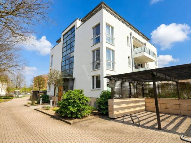Willkommen bei dieser exklusiven Penthouse-Wohnung in den "Stadtvillen am Französischen Garten"! Mit einer großzügigen Wohnfläche von ca. 122 m² und drei Zimmern bietet diese Immobilie ein komfortabl...
