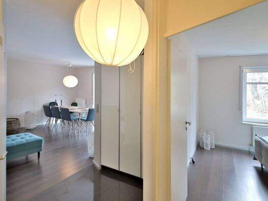 Sehr exklusive 2-Zimmer-Wohnung mit 94 m² Wohnfläche im 3. Obergeschoss. Modern, luxuriös, ikonisches Innendesign und mit einem beeindruckenden Ausblick. Die erhöhte Lage, das ruhige Gartenensemble d...