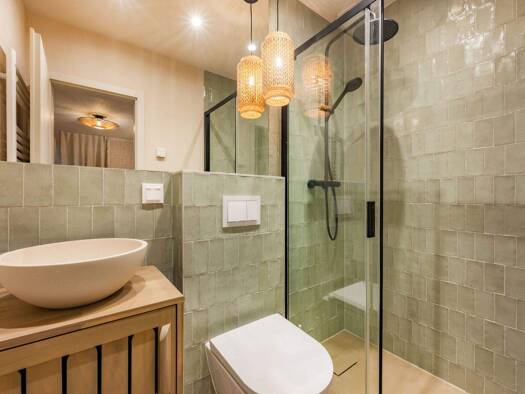 Diese geräumige Wohnung bietet Ihren Gästen Komfort und Entspannung pur, ideal zur Vermietung. Treten Sie ein in den einladenden Flur, die direkt zu den zwei stilvollen Bädern führt. Das Herzstück de...