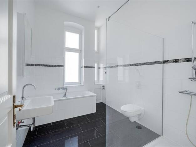 In einem repräsentativen Altbau aus dem Jahr 1900 entsteht derzeit eine mit viel Liebe zum Detail modernisierte Wohnung, die historische Bausubstanz mit zeitgemäßen Ausstattungsmerkmalen verbindet. D...