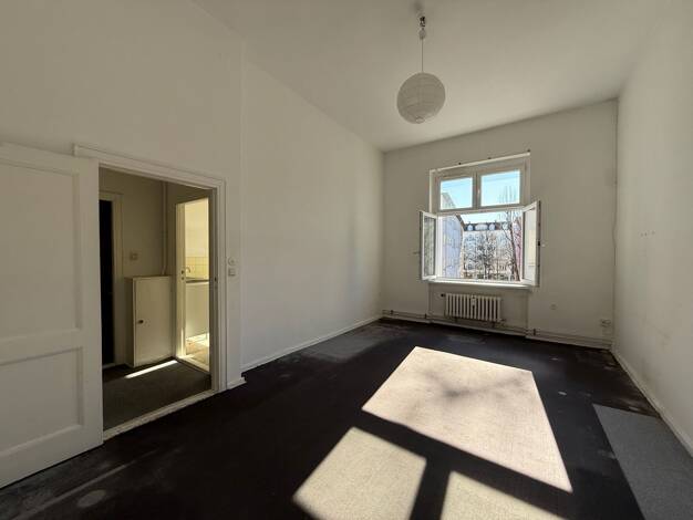 Unter den ca. 3,45 Meter hohen Zimmerdecken präsentiert diese Wohnung einen praktischen Schnitt und eine intensive Tageshelligkeit. In den zwei Zimmern gibt es noch die originalen Doppelkastenfenster...