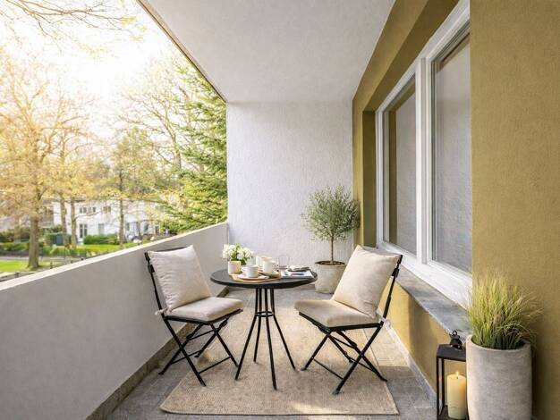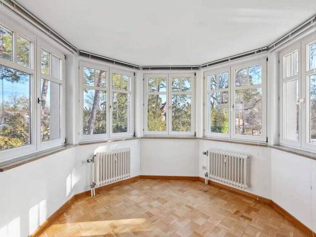 Mit Ihrer Ausrichtung nach Osten, den großen Fenstern und dem geschützten Balkon bietet die helle Wohnung einen schönen Blick auf den Wannsee und die Bäume des zum Haus gehörenden Gartens. Aufgrund d...