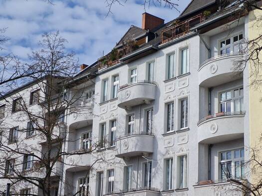 Die Wohnung befindet sich in der 2. Etage (ohne Aufzug) eines um die Jahrhundertwende erbauten Mehrfamilienhauses, das durch seine Stuckelemente und farbig verglasten Fenster im Hausflur und Treppena...