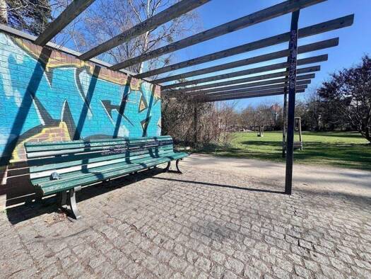 Die Wohnanlage wurde 1929 erbaut und erstreckt sich von der Straße entlang in einer ruhigen Sackgassen-Straße bis zur Parkanlage. Die Wohnung befindet sich im letzten Hauseingang, direkt am Park gele...
