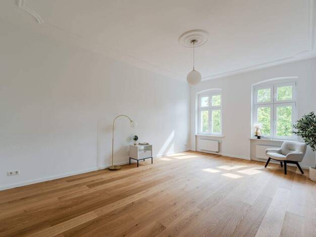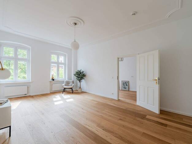 Diese besondere Erdgeschosswohnung vereint klassische Berliner Altbauarchitektur mit einem außergewöhnlichen Maß an Ruhe, Großzügigkeit und Flexibilität. Eingebettet im geschützten Hinterhaus entsteh...