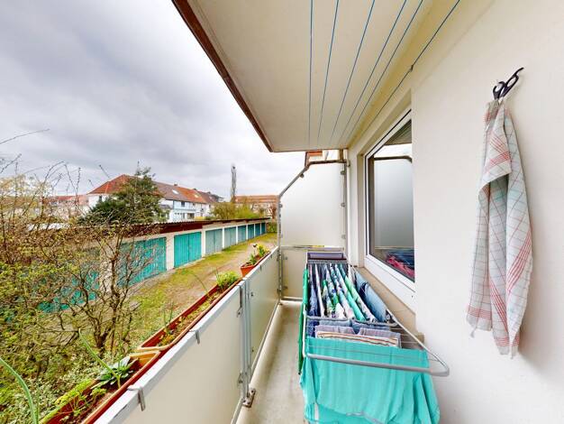 Im Hochparterre des Mehrparteienhauses befindet sich diese vermietete 2-Zimmer-Wohnung. Auf ca. 57 m² bietet diese Wohnung ein großes Wohnzimmer mit Zugang auf die Loggia, ein Schlafzimmer mit Platz ...