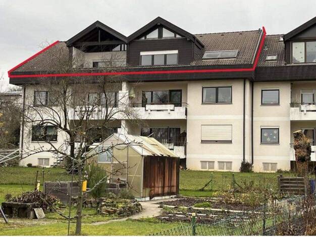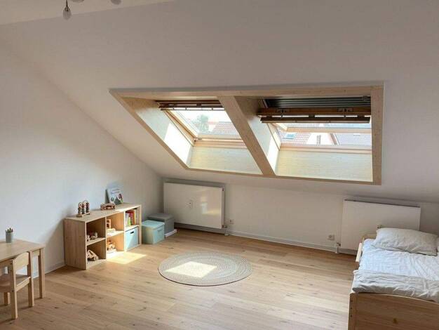 Diese Dachgeschosswohnung wurde im Jahr 1994 im Zuge eines Ausbaus als eigenständige Wohneinheit mit Teilungserklärung geschaffen. Sie befindet sich im oberen Geschoss eines Zweifamilienhauses in ein...