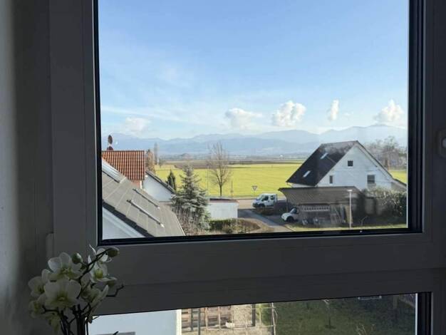 In wunderschöner Aussichtslage mit Blick über die Rheinebene bis hin zu den Vogesen liegt diese großzügig geschnittene 3-Zimmer-Wohnung. Das Wohnhaus mit 5 Einheiten befindet sich in einem gewachsene...