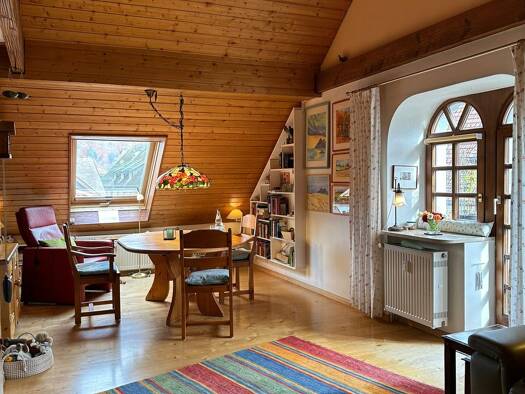 Wohnen mit Weitblick, helle Dachwohnung mit Galerie & Wintergarten in Schluchsee Diese Wohnung ist mehr als nur vier Wände sie ist ein Ort zum Ankommen und Wohlfühlen. Hoch oben im Dach eines Dre...