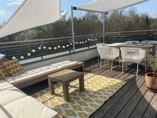 Dieses stilvolle Penthouse in absoluter Top-Lage von Waldtrudering vereint modernes Wohnen mit naturnahem Lebensgefühl. Die Immobilie liegt in ruhiger, grüner Waldrandlage – unverbaut und mit einem t...
