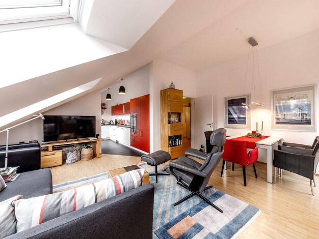 Diese charmante und moderne Dachgeschosswohnung begeistert durch ihre Helligkeit und hochwertige Ausstattung. Sie befindet sich in einem gepflegten Mehrfamilienhaus mit insgesamt nur sechs Parteien, ...