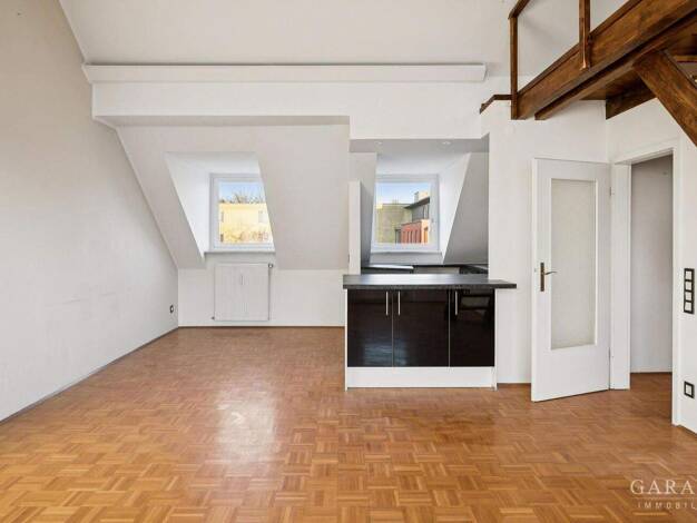 Willkommen in Ihrem neuen Zuhause über den Dächern von München - Diese großzügige und lichtdurchflutete Dachgeschoss-Maisonette auf zwei Ebenen besticht durch ihre offene Gestaltung und eine hervorra...