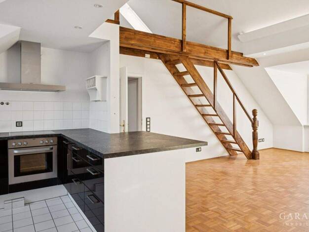 Diese helle und sonnige 2 1/2 Zimmer-Dachgeschoss-Wohnung vereint urbanes Leben mit einem besonderen Wohnambiente. Sie entstand 1988 im Zuge eines Dachgeschossausbaus und ist damit wesentlich jünger ...