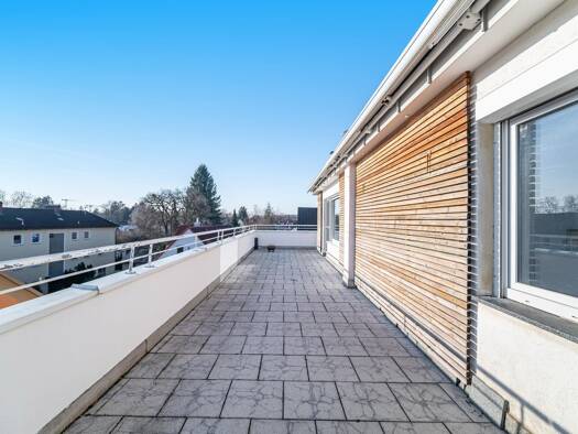 Wohnen - lichtdurchflutet mit Weitblick Diese moderne 2-Zimmer-Dachterrassenwohnung in der Wolfratshauser Straße vereint zeitgemäßen Wohnkomfort mit einem durchdachten Grundriss, zwei großzügigen Ter...