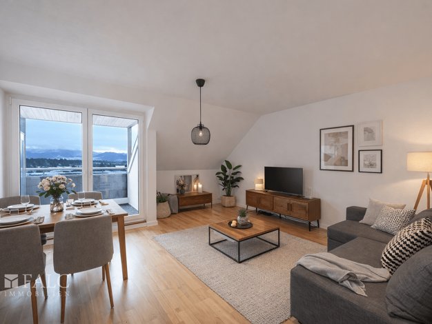 Diese ansprechende 2-Zimmer-Dachgeschosswohnung mit ca. 52 m² Wohnfläche befindet sich in einer sehr gepflegten Wohnanlage in Halfing. Sie überzeugt durch ihren besonderen Charme, hohe Decken und ein...