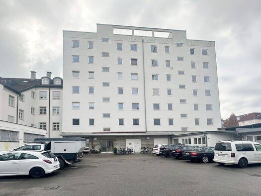 Die ca. 64 m2 große 2-Zimmer Wohnung befindet sich im 6. OG (mit Aufzug) eines Wohn-und Geschäftshauses in Rosenheim. Im Erdgeschoss des großen Gebäudes befindet sich eine Gewerbefläche und die 24 Wo...