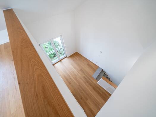 Die lichtdurchflutete, helle Dachgeschoss Maisonettewohnung mit bis zu 4,80 m hoher, offener Dachgalerie befindet sich in ruhiger Lage direkt am Stadtrand. Von der sonnigen, teilweise überdachten Dac...