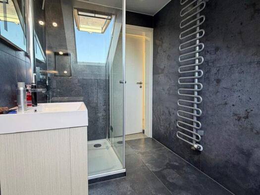 Diese helle und modern renovierte Dachgeschosswohnung befindet sich in einem ruhigen sechs Parteienhaus, im Eingangsbereich der Wohnung empfängt Sie ein großzügiger Flur mit großformatigen, modernen ...