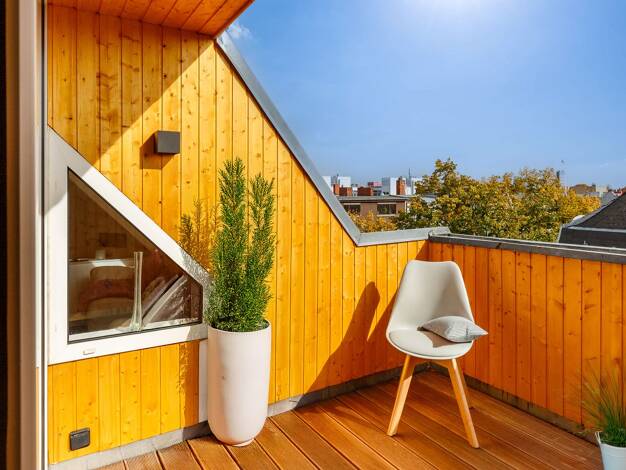 In den Dachgeschosswohnungen des Rheingaus fühlt man sich dem Alltag ein Stück weit enthoben. Hier, im fünften Stock, genießen Sie nicht nur einen herrlichen Blick über das Berliner Häusermeer. Die R...