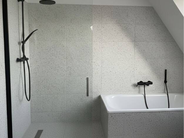 Großzügiges Dachgeschoss mit hohen Decken, großer Sonnen-Terrasse und Weitblick über die Stadt in klimafreundlichem Effizienzhaus 40 mit KfW-Förderung. Mit zwei Bädern, 1x mit Dusche und 1x mit Bade...