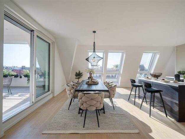 Exquisite Penthousewohnung, die durch ihre stilvolle Innenausstattung, hochwertige Materialien und durchdachte Raumgestaltung besticht. Auf ca. 49 m² Wohnfläche erwarten Sie zwei lichtdurchflutete Zi...