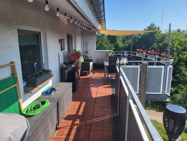 + große DG-Wohnung mit insgesamt 4 Zimmern + Wannenbad + Gäste-WC + 2 große Terrassen + Pkw-Außenstellplatz inklusive + EBK mit Geräten + Keller + letzte Sanierungsmaßnahmen: neue Heizung, Terrassen ...
