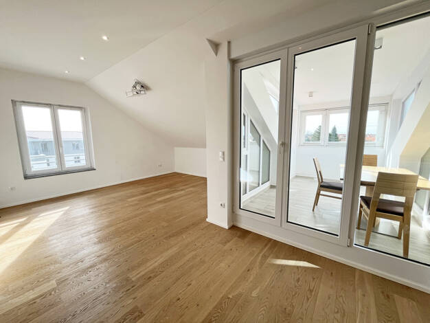 Objektbeschreibung Mitten in Altperlach befindet sich diese wunderschöne Dachgeschosswohnung mit uneinsehbarer Dachterrasse in hervorragender Lage wo Ihr Auto gerne länger in der Garage sich ausruhen...