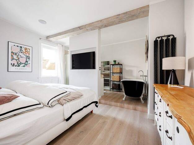 Treten Sie ein in diese 2023 modernisierte Dachgeschosswohnung, die mit ihrem einzigartigen Loft-Charakter und der offenen, luftigen Bauweise ein besonderes Wohngefühl vermittelt. Die Wohnung verteil...