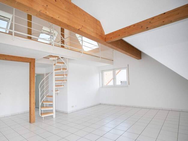 Objektbeschreibung Eine hochwertig Eigentumswohnung im Dachgeschoss mit einem Wohnraum / Galerie im Spitzboden, eine ganz außergewöhnliche, großzügige Raumaufteilung, Die Wohnung kann kurzfristig an ...