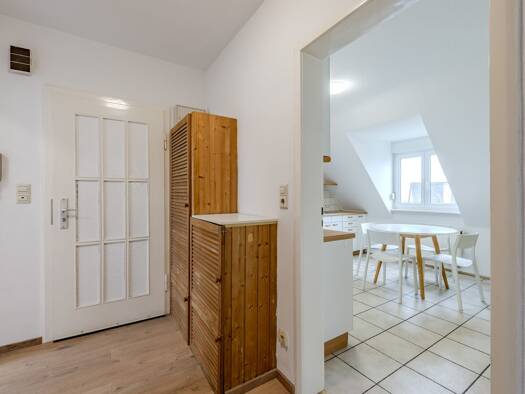 Entdecken Sie diese charmante 2-Zimmer-Dachgeschosswohnung in einem gepflegten 6-Parteienhaus, die Ihnen eine harmonische Verbindung aus ruhigem Wohnen und exzellenter Verkehrsanbindung bietet. Das g...
