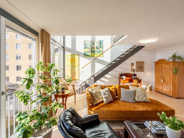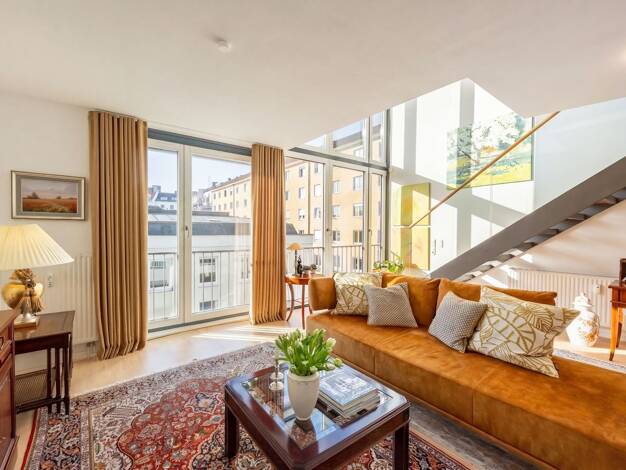 Hoch über den Dächern – im Herzen der Maxvorstadt: diese Penthouse Maisonette Wohnung definiert großstädtisches Wohnen neu. Das schicke Ambiente erstreckt sich über das 4. Obergeschoss und das Dachge...