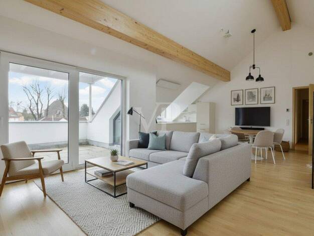 Diese außergewöhnliche Dachterrassenwohnung mit besonderem Flair befindet sich in einem stilvollen, gepflegten Anwesen mit nur acht Einheiten in idyllischer Waldrandlage - ein Ort, an dem Ruhe, Priva...