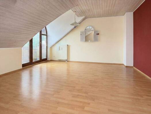 Abseits des hektischen Stadtlebens erwartet Sie im Dachgeschoss eines gepflegten Hauses aus dem Jahr 2012 eine moderne Maisonette-Wohnung, die mit viel Licht, offenen Räumen und einem unverbaubaren B...