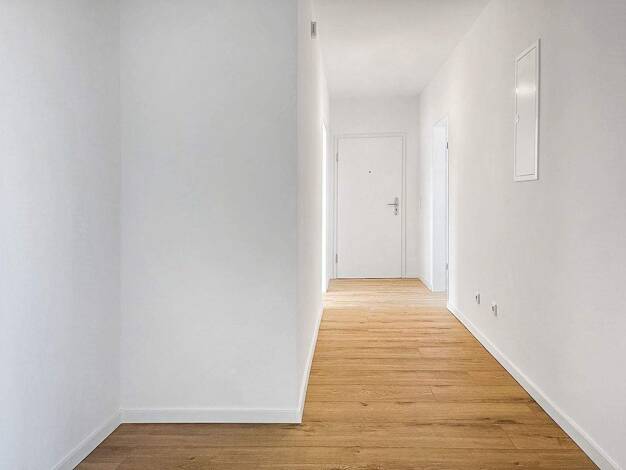 Die Wohnung Nr. 12 im linken oberen Stockwerk verfügt über eine Wohnfläche von 64,44 m² und besteht aus einer Eingangsdiele, einem separaten WC, einem Abstellraum, zwei Schlafzimmern, einem Flur, ein...