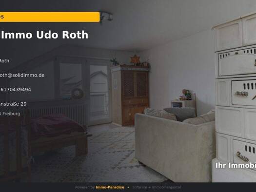 Diese charmante Dachgeschosswohnung befindet sich in einem Dreifamilienhaus im 2. OG = DG in ruhiger Lage in Teningen. Sie kommen vom Treppenhaus in den Vorraum, indem sich Garderobe und Schuhshrank ...