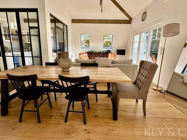 Diese sehr eindrucksvolle Wohnung entfaltet ein außergewöhnlich generöses und lichtdurchflutetes Wohlgefühl mit Penthouseflair. Wenn überhaupt, dann weisen die Wände nur eine geringe Schräge auf. Die...
