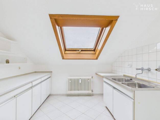 Diese Dachgeschosswohnung mit 2,5 Zimmern erstreckt sich über das gesamte Stockwerk und besticht durch ihren offenen Loft-Charakter. Essbereich, Wohnzimmer und Küche gehen fließend ineinander über. Z...