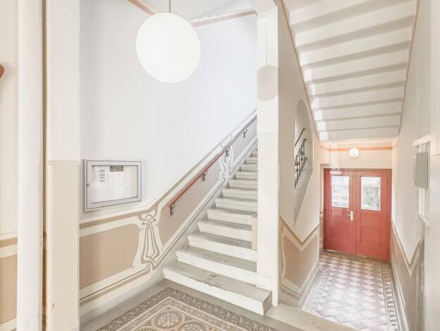 Vermietete 2-Zimmer-Eigentumswohnung (ca. 42 m²) im 3. Obergeschoss eines stilvollen Gründerzeithauses aus 1900. Im Jahr 2025 wurde die Wohnung modernisiert: offene Wohnküche, separater Schlafbereich...
