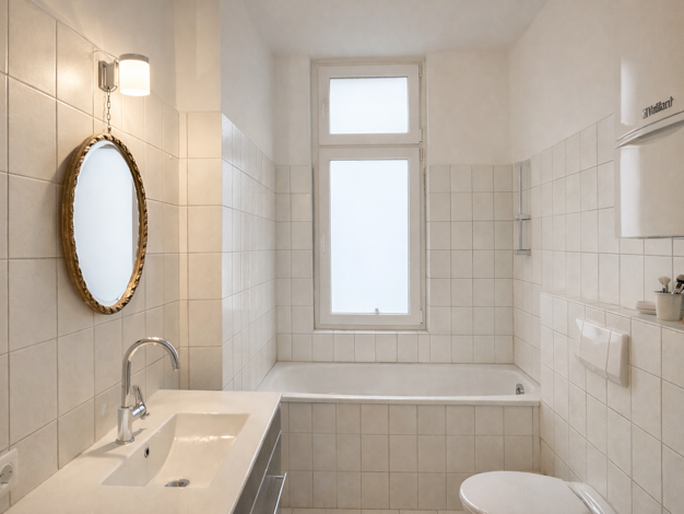 Die Wohnung beeindruckt durch seine geräumige und helle Wohnküche. Eine Abstellkammer ist ebenfalls integriert. Aus dem Fenster blickt man auf einen grünen Innenhof und im Hintergrund den Düsseldorfe...