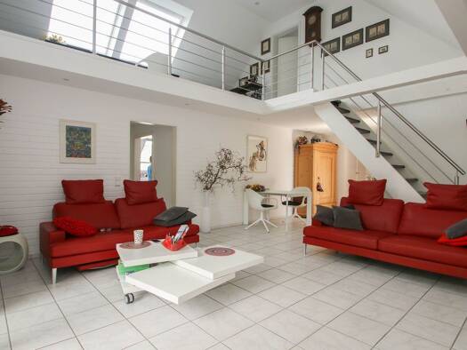 Attraktive Galeriewohnung im zweiten Obergeschoss. Mittelpunkt der Wohnung ist der offen gestaltete Wohn- und Essbereich mit über 38?m². Das große Fensterelement mit Zugang zur Südloggia sind ein ech...