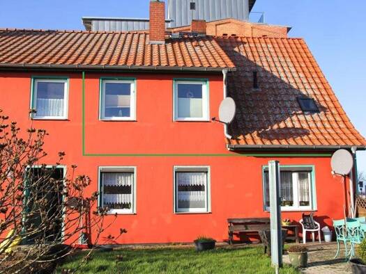 Erdgeschosswohnung im Zweifamilienhaus mit Südterrasse, Feldblick & großem Gartenanteil in Steinhagen (bei Stralsund) Ein massiv errichtetes Zweifamilienhaus bietet Ihnen die hier angebotene prak...