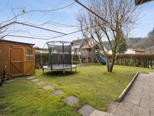 Durch die leichte Hanglage, kommen Sie ebenerdig vom Parkplatz oder Garage in die Einliegerwohnung und die Kellerebenen. Die Einliegerwohnung hat eine sehr großzügige überdachte Terrasse, wo es sich ...