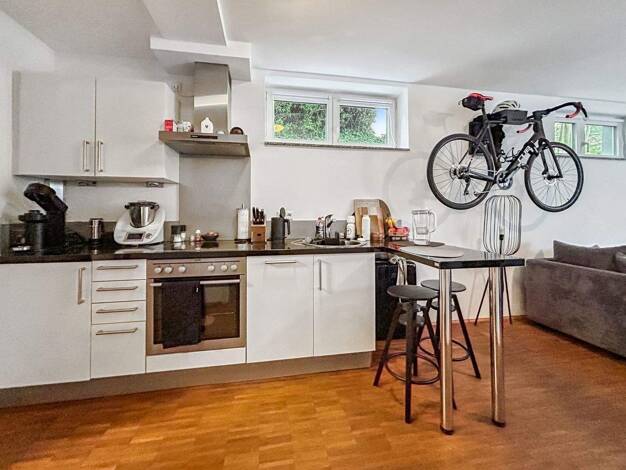 Dieses renovierte 1-Zi.-Apartment liegt im EG eines Mehrfamilienhauses und besteht aus einer kleinen Küchenecke, einer Schlafnische und einem geräumigen Wohn-/Essbereich mit viel Tageslicht. Von hier...