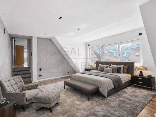 Ein Nest für Individualisten mit höchsten Ansprüchen, denn dieses noble Studio-Apartment besitzt einen eigenen Eingang und wirkt mit seiner Raumhöhe von ca. 2,96 m wie ein edler Kokon. Hier gibt es a...