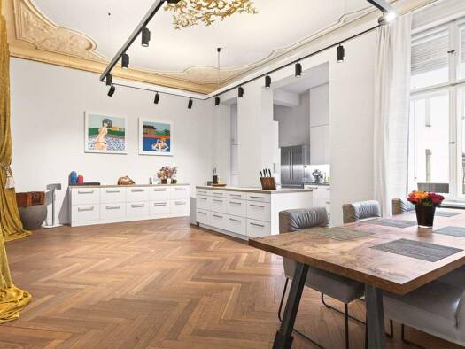 Die bezugsfreie Altbau-Eigentumswohnung entfaltet sich über die repräsentative Beletage und ein aufwendig ausgebautes Souterrain mit einer Gesamtfläche von ca. 253 qm. Sie liegt in einem denkmalgesch...