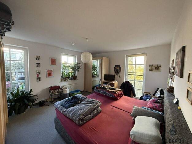 Das Apartment hat einen ca. 18 m² großen Wohnbereich mit offener kleiner Kücheneinheit und Balkon. Von dem Balkon gelangen Sie in den separaten Gartenanteil. Das Bad ist mit Dusche ausgestattet und e...
