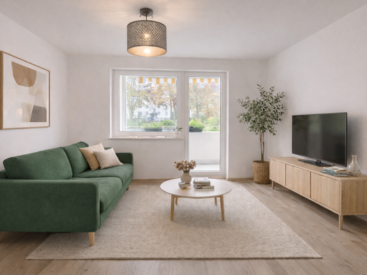 Diese gut geschnittene Erdgeschosswohnung bietet drei großzügige Zimmer und überzeugt durch einen funktionalen Grundriss mit angenehmem Wohnkomfort. Der große Balkon erweitert den Wohnbereich nach au...