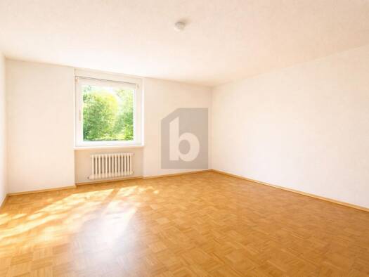 Der klassische Stäbchenparkettboden verleiht den Wohnräumen eine warme und zeitlose Atmosphäre, während der gut durchdachte Grundriss vielseitige Nutzungsmöglichkeiten für Wohnen, Arbeiten oder Gäste...