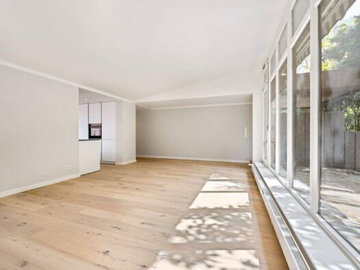 Diese stilvoll sanierte Wohnung liegt im Erdgeschoss/Hochparterre eines gepflegten Mehrfamilienhauses aus dem Jahr 1983. Die rund 132m² Wohnfläche verteilen sich auf zwei Zimmer, darunter ein großzüg...