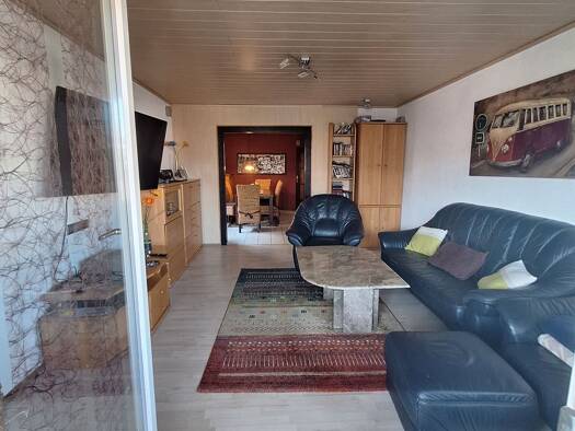 Am Ende einer Sackgasse in ruhiger Wohnlage, nur 2 Gehminuten vom Feldrand entfernt, befindet sich diese rund 93m² große Wohnung im Hochparterre eines gut gepflegten Mehrfamilienhauses. Das Gebäude i...